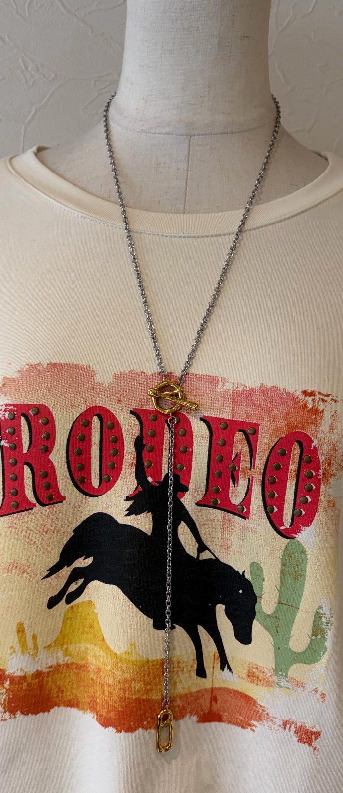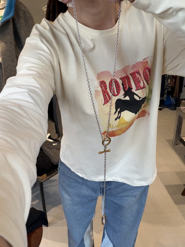 Tシャツにはこんなかっこいいロングのネックレスを合わせてみました,