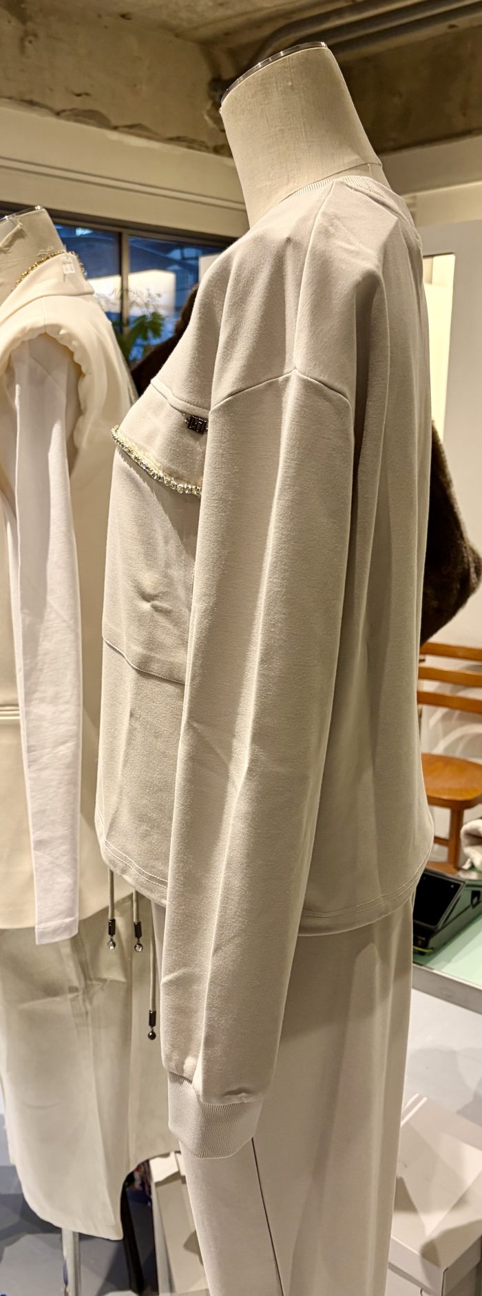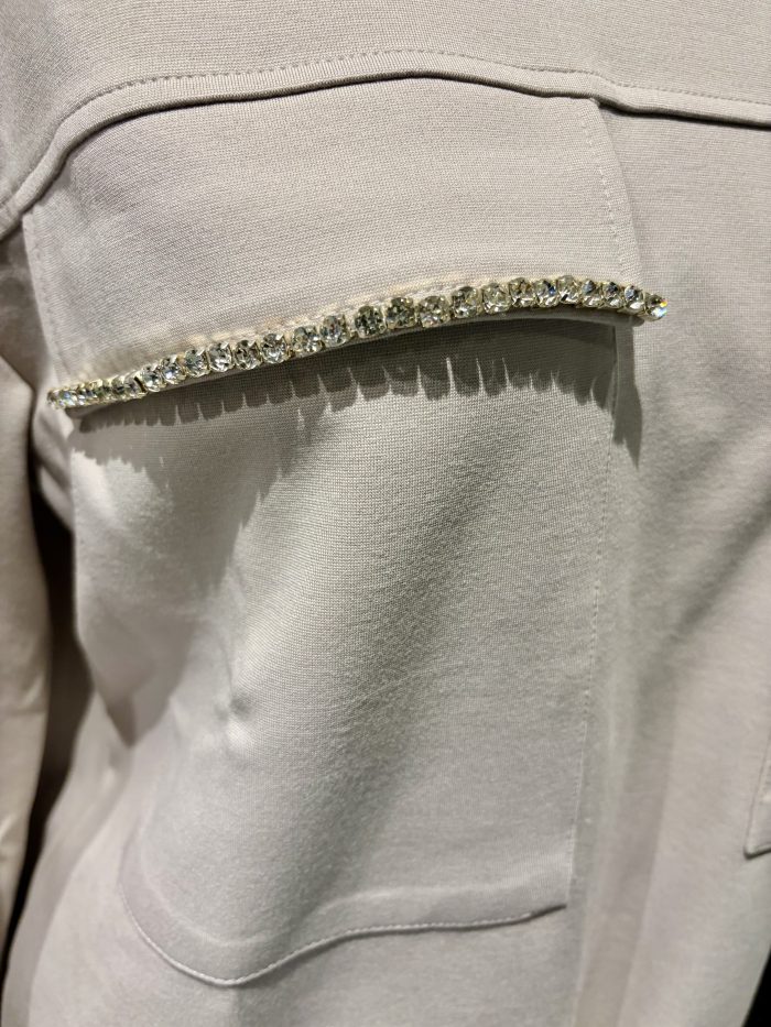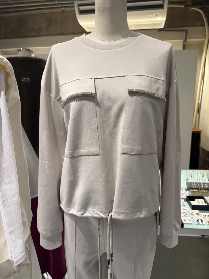 胸元のポケットのビジューが美しい