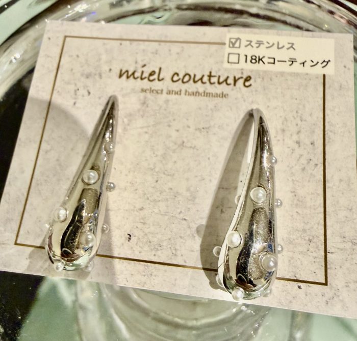 ステンレス素材なので、変色せず、金属アレルギーの方もつけていただけます,