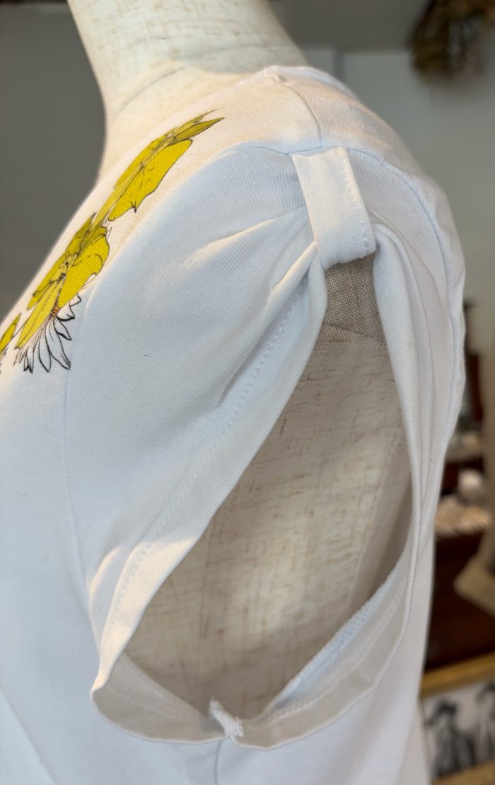 袖のリボンみたいになったデザインがとってもかわいいTシャツです。