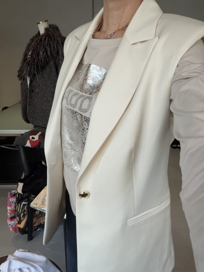 肩パッドが入ったかっこいいタキシードジレです。