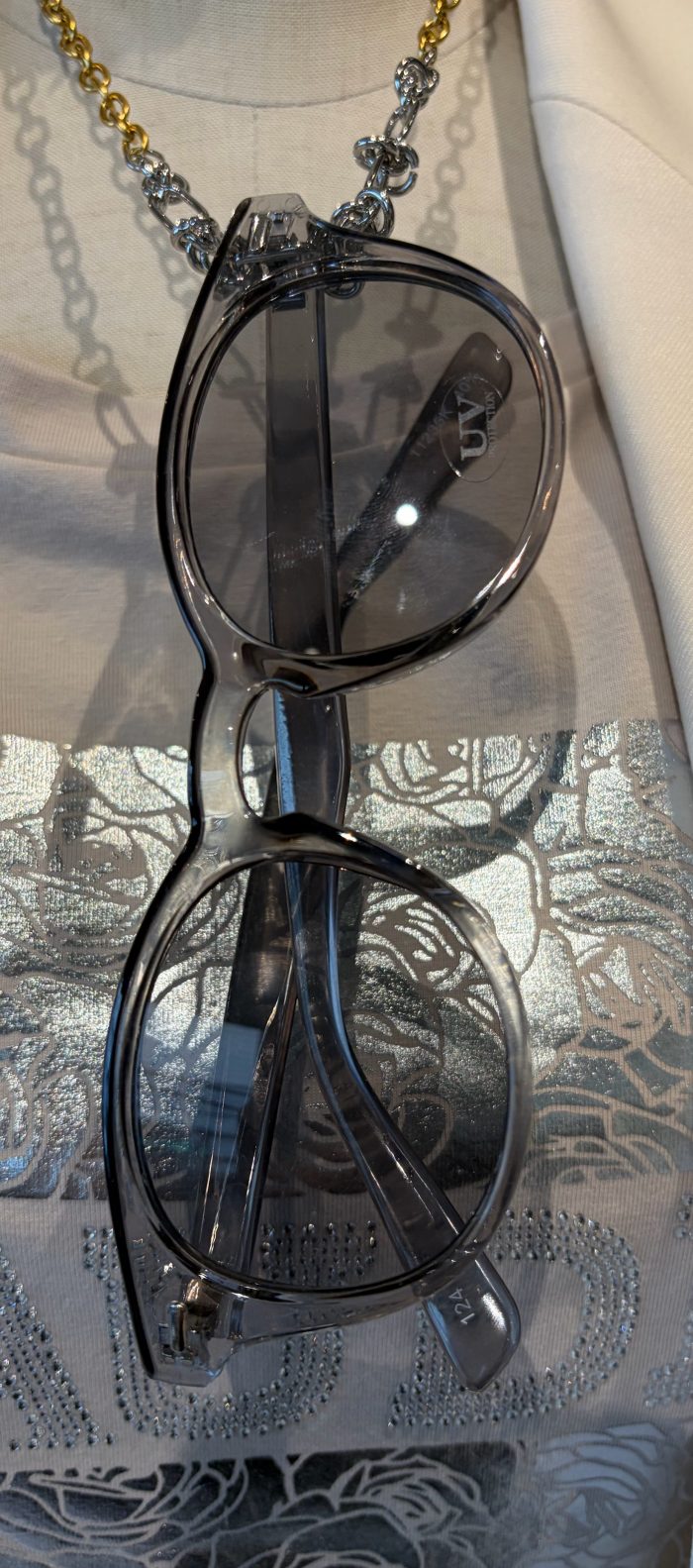 こちらのサングラスはクリアなので天候が悪い日とかもつけやすい。