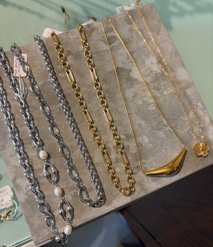 こちらのネックレスはステンレスですので、変色せず、金属アレルギーの方も安心してつけていただけます,