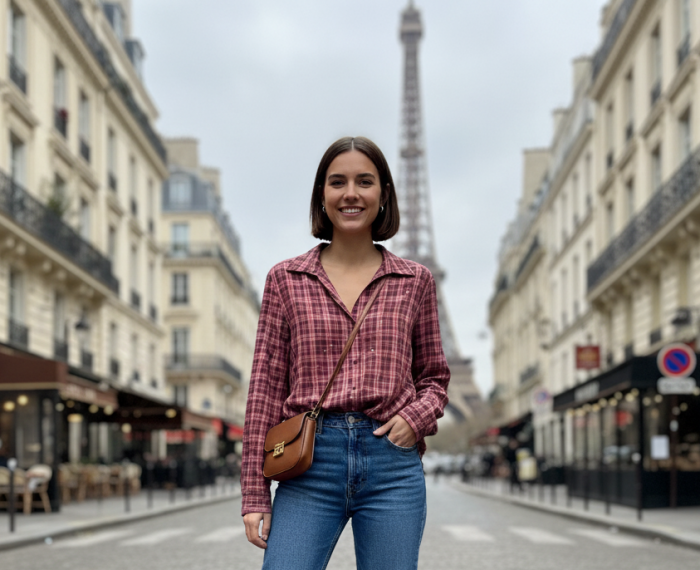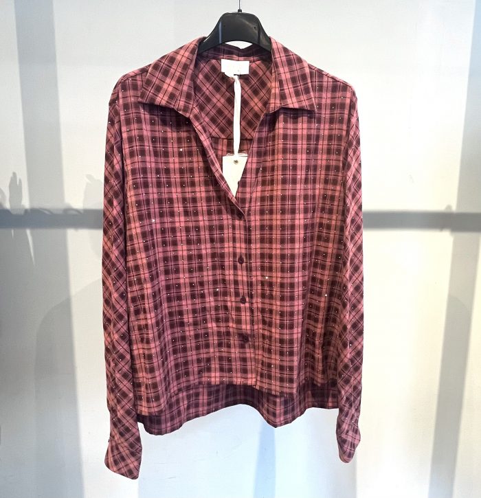 キラキラ感があり、カジュアルになりすぎない、きれいめなチェックシャツです