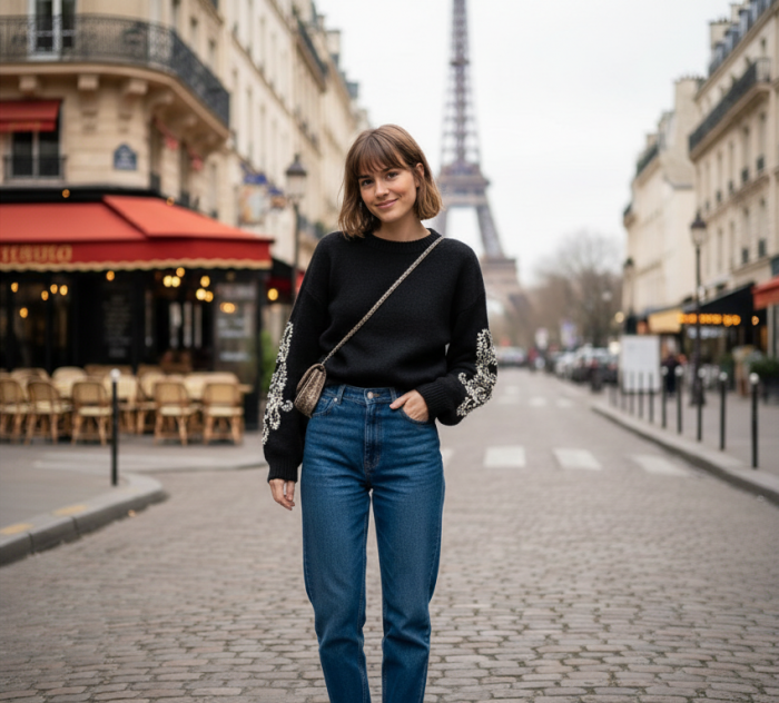 ふんわりとしたお袖のデザインと華やかなパールと刺しゅうが女性らしいデザインのにっとです