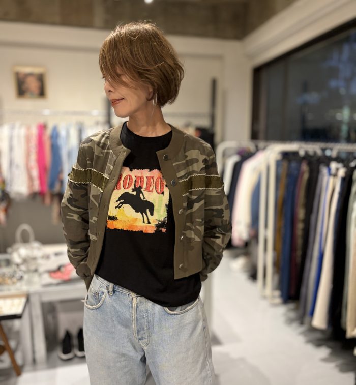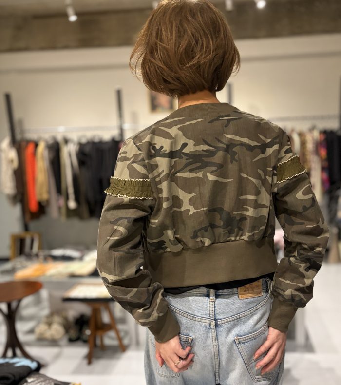 ショート丈に長いの袖と、全体のバランスが良い迷彩ブルゾンです。