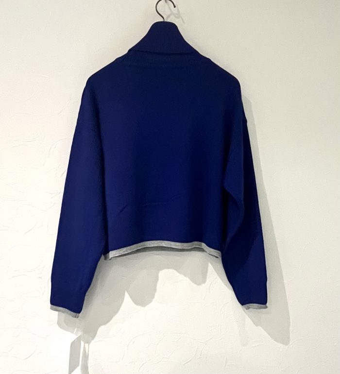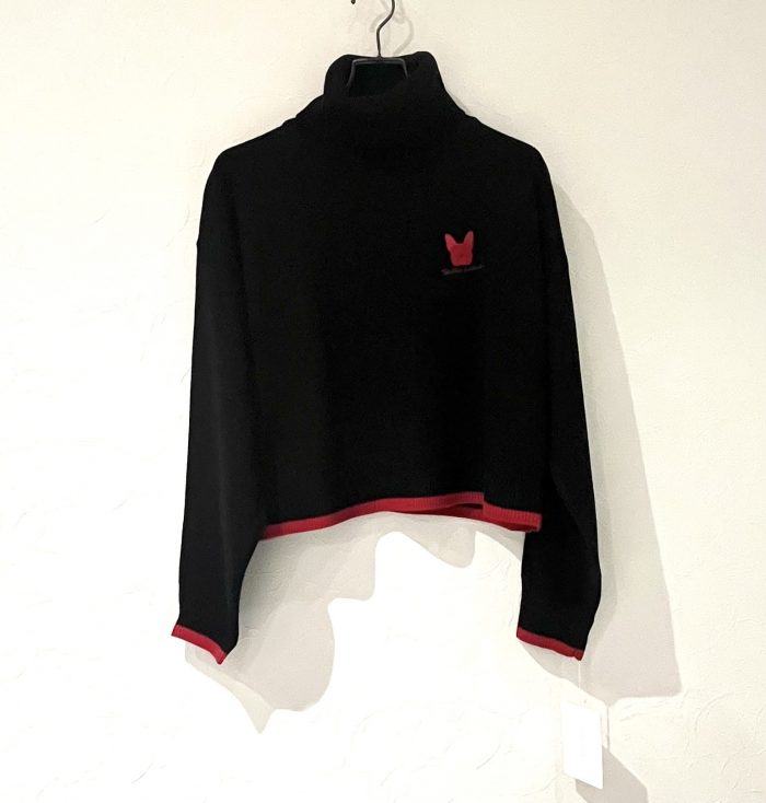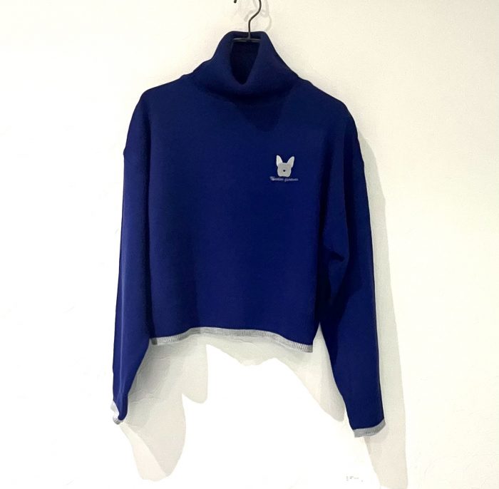 フレンチブルの刺しゅうがかわいいタートルニット