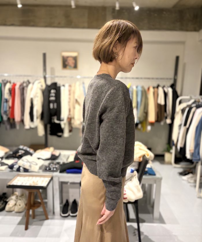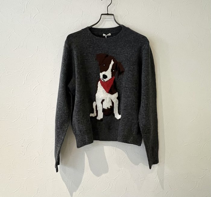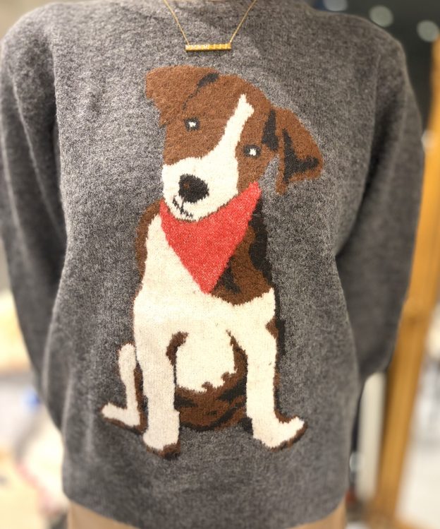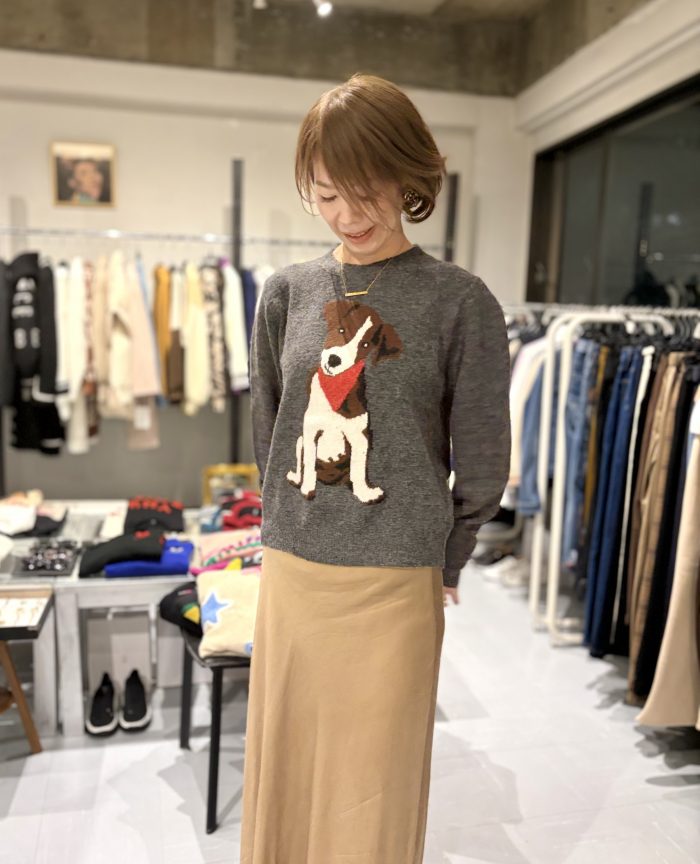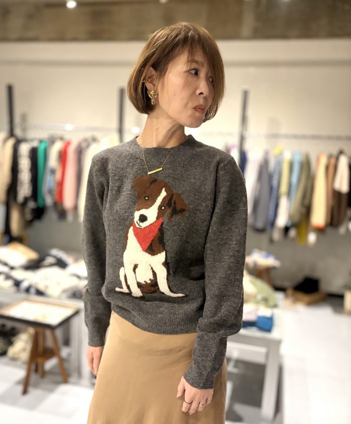 グレーのニットなので、ワンちゃんプリントもシックな印象