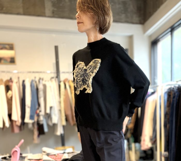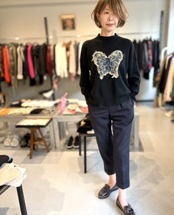 ショート丈とお袖のふんわり感によって、着た時のバランスが良く、足長効果バッチリです。