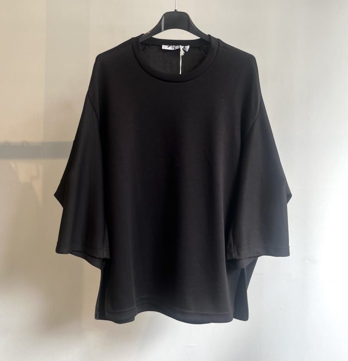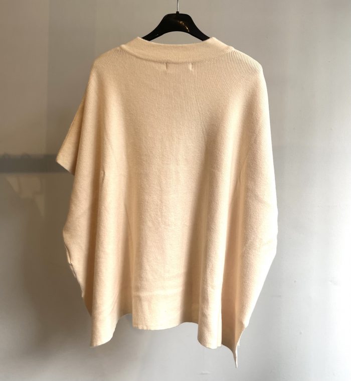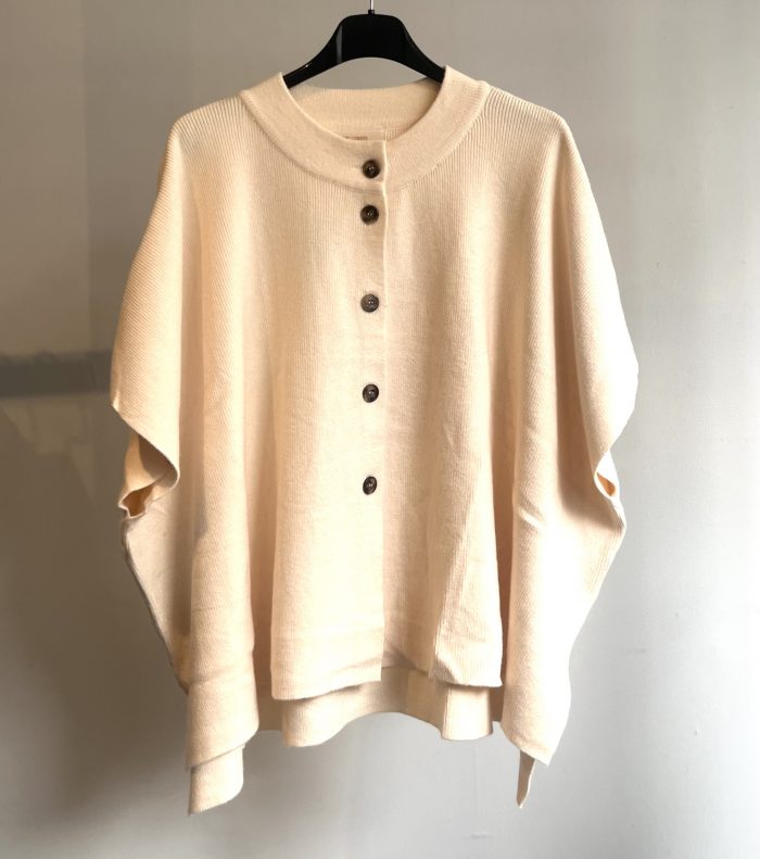 ボタンが付いていて、かわいいポンチョ風のニットです