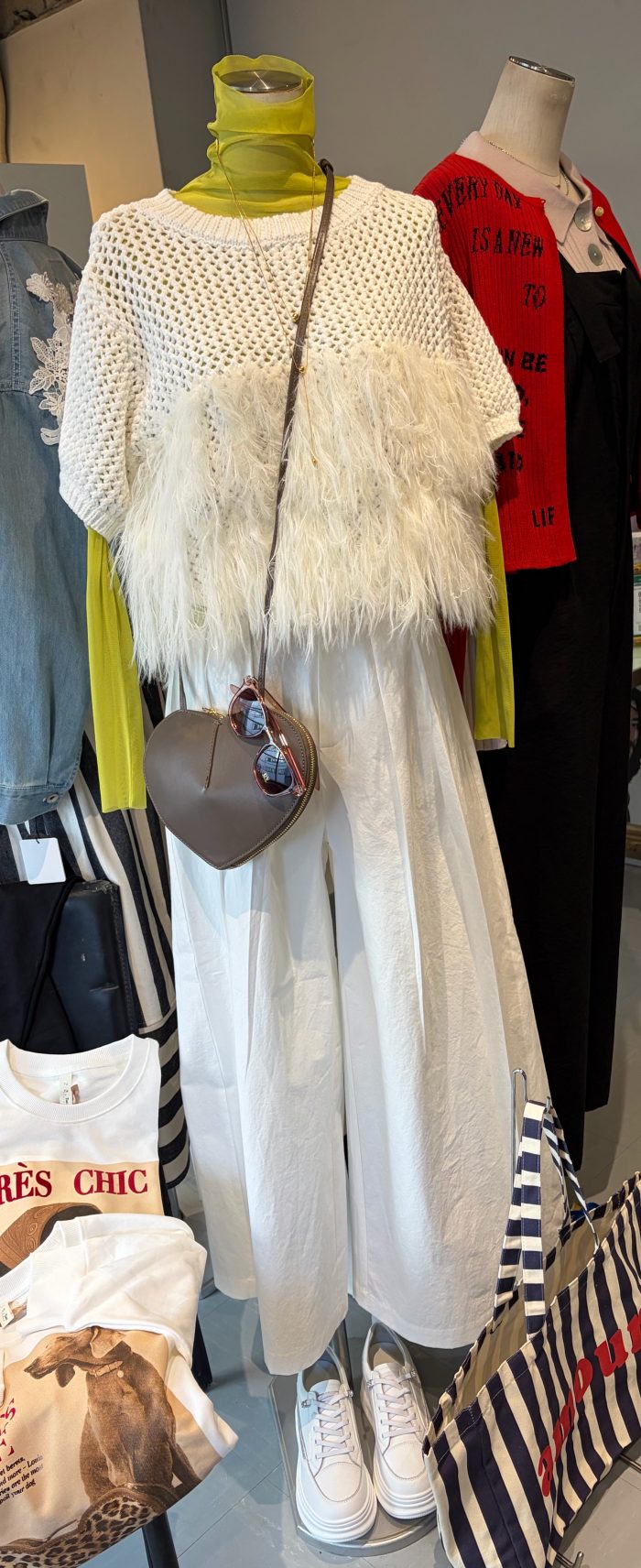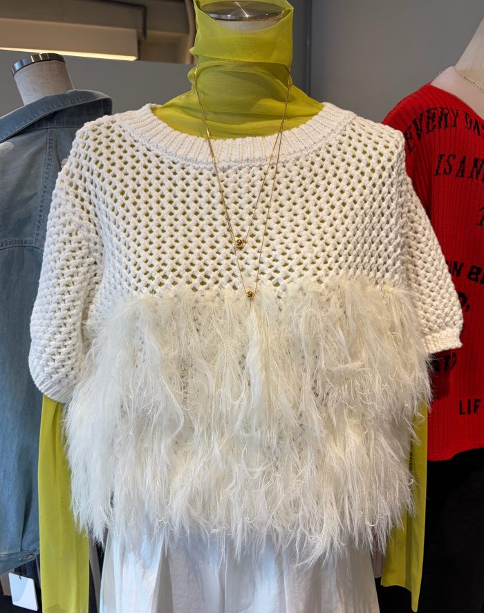 いろいろなものと重ね着して楽しんでいただけるニットです。